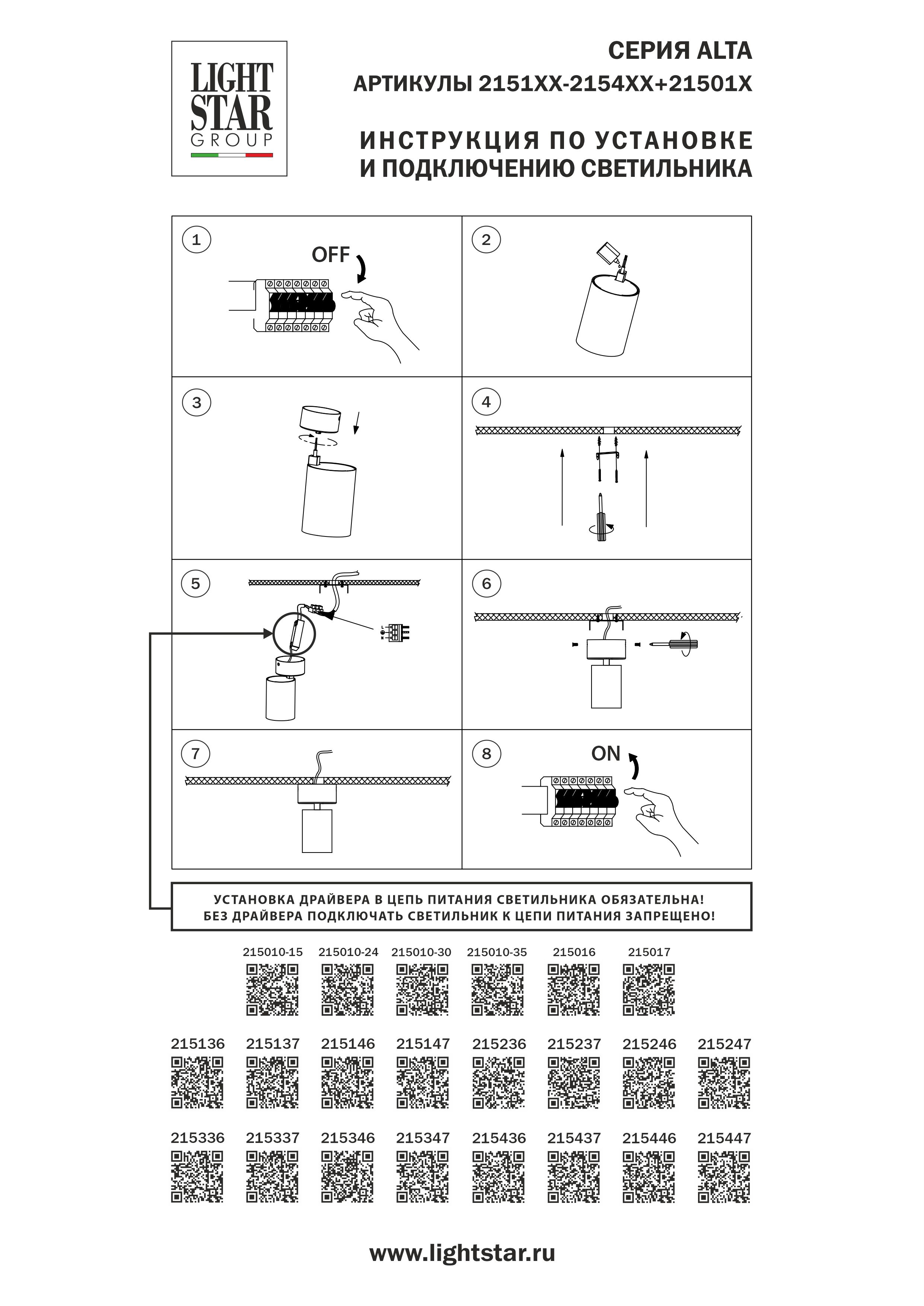 | Альтернативное название | 215010-30 Блок питания LIGHTSTAR 30W для серии ALTA 2153XX, 2156XX |